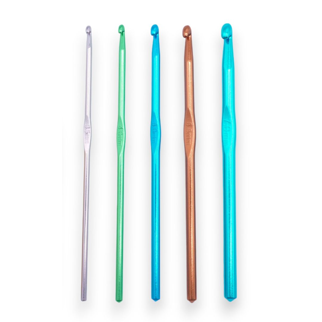 These aluminum crochet hooks are lightweight, smooth, and easy to work with, making them a dependable tool for any crochet project. The polished aluminum surface helps the hook glide effortlessly through yarn, creating consistent tension and clean stitches. Without added grips or coatings, these hooks offer a simple, classic feel that many crocheters prefer for speed and control. Durable, comfortable to hold, and great for everyday use, they are ideal for beginners, amigurumi makers, and experienced crocheters alike.
