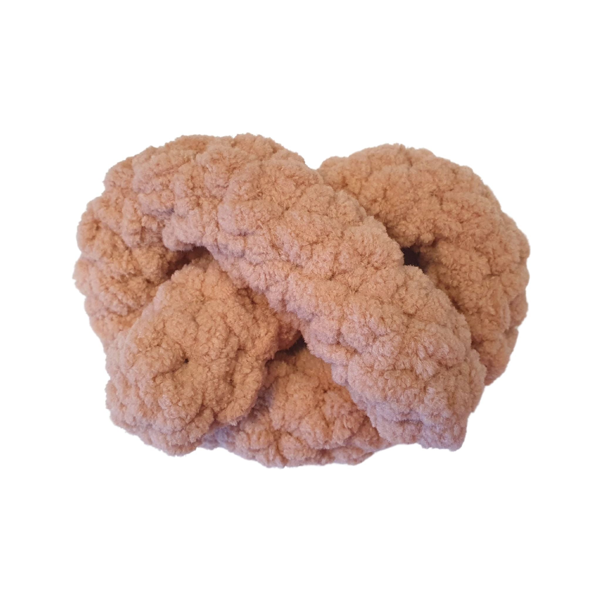 Made with plush chunky chenille yarn, this pretzel is irresistibly soft and has just the right twisty texture. It's a fun and satisfying project you can complete in no time, making it ideal for new crocheters or a relaxing, quick craft session.