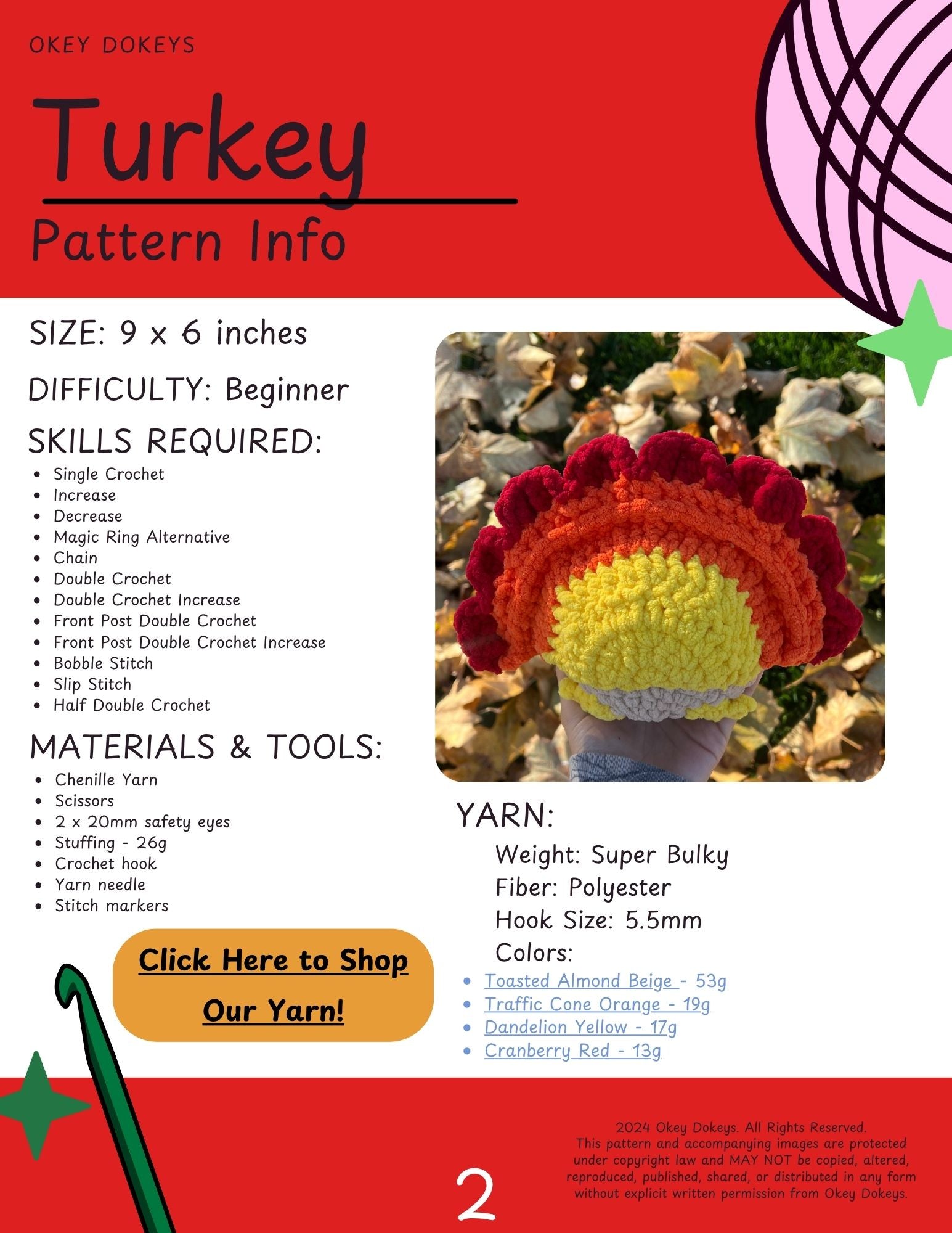 This adorable Turkey plush is a quick and cozy beginner project perfect for fall decorating, gifting, or adding a festive touch to your crochet collection. Easy stitches and soft chenille yarn make it fun for any skill level!