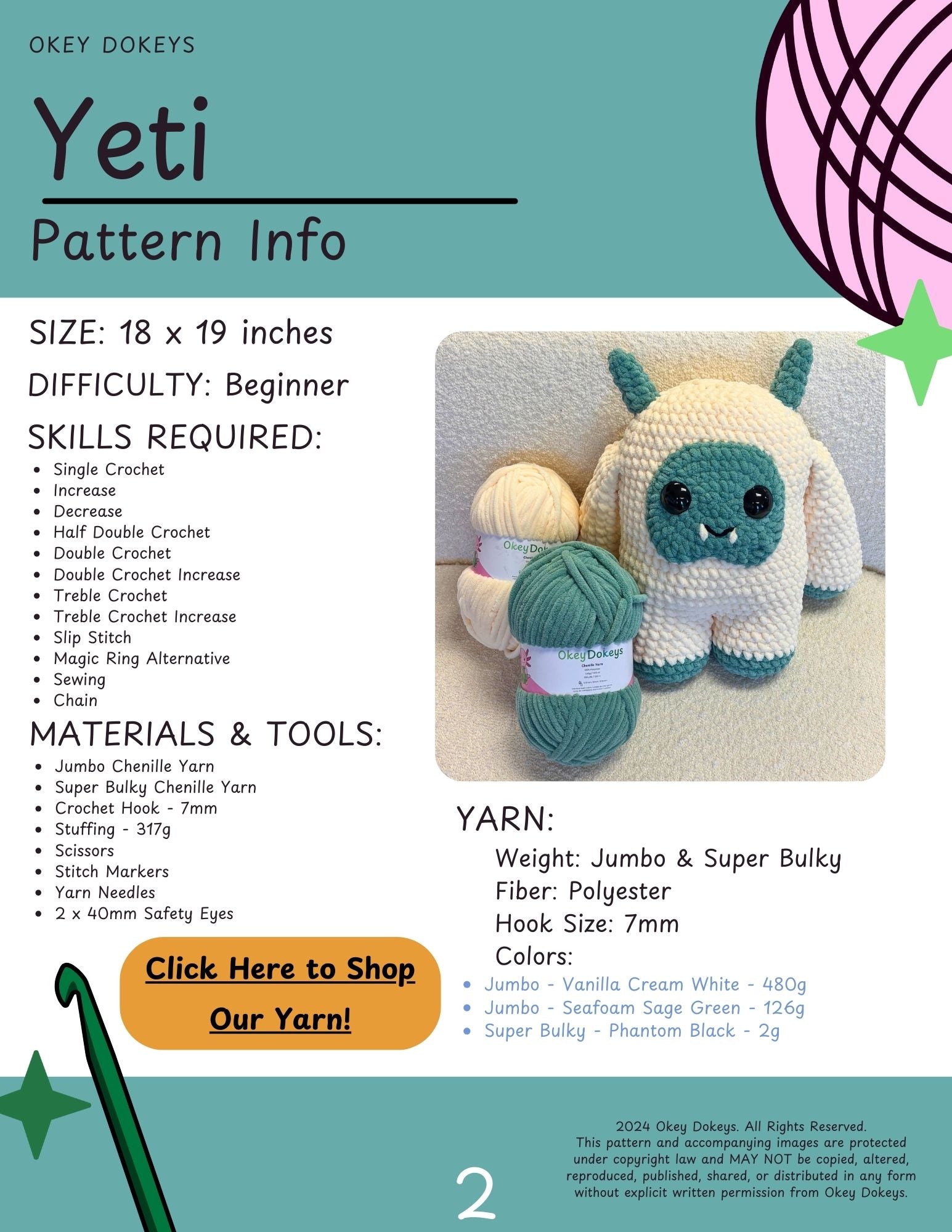 This fuzzy, friendly Yeti is the perfect winter companion! Made with plush chenille yarn and simple beginner stitches, this oversized amigurumi is wonderfully soft, squishy, and surprisingly easy to assemble—great for gifting or snuggling all season long.